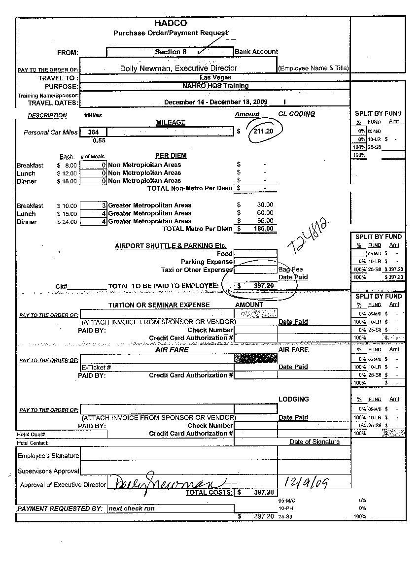 The income and expense statements from HADCO’s September 2009 and January 2010 showing travel and training overbudget by 700 and 688% respectively can be accessed at CEA’s website: www.cea4justice.org