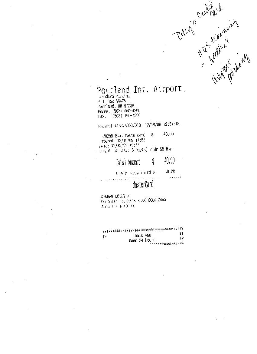 All of these will open in another window. Note a few things here. One is the rental car and the mileage on it. Also it seems valet parking was paid for for the rental car in one of the receipts. Markings on the documents were made before we got them.